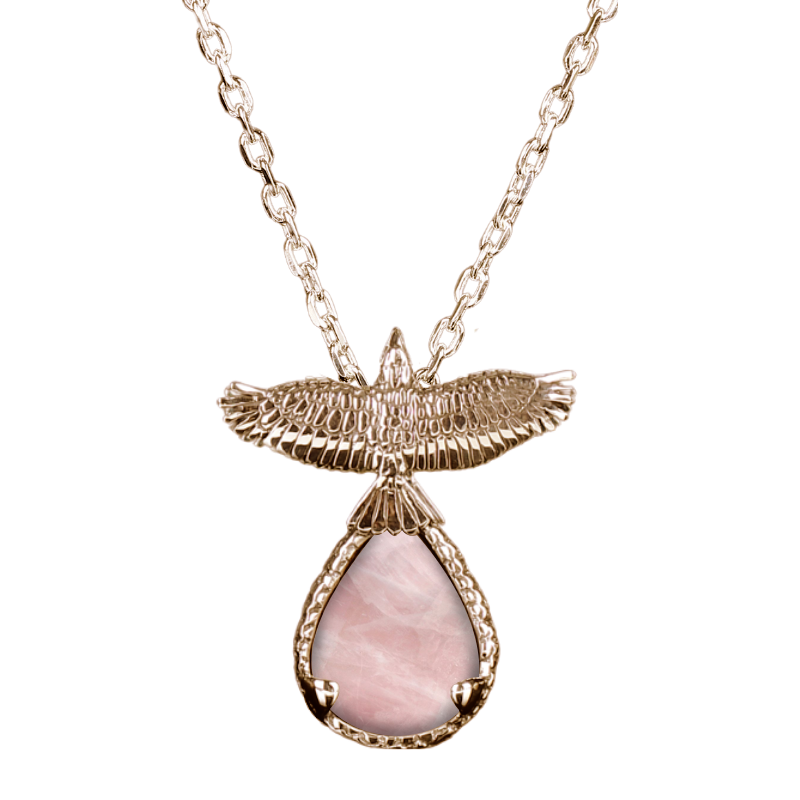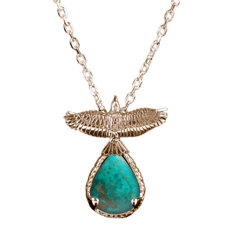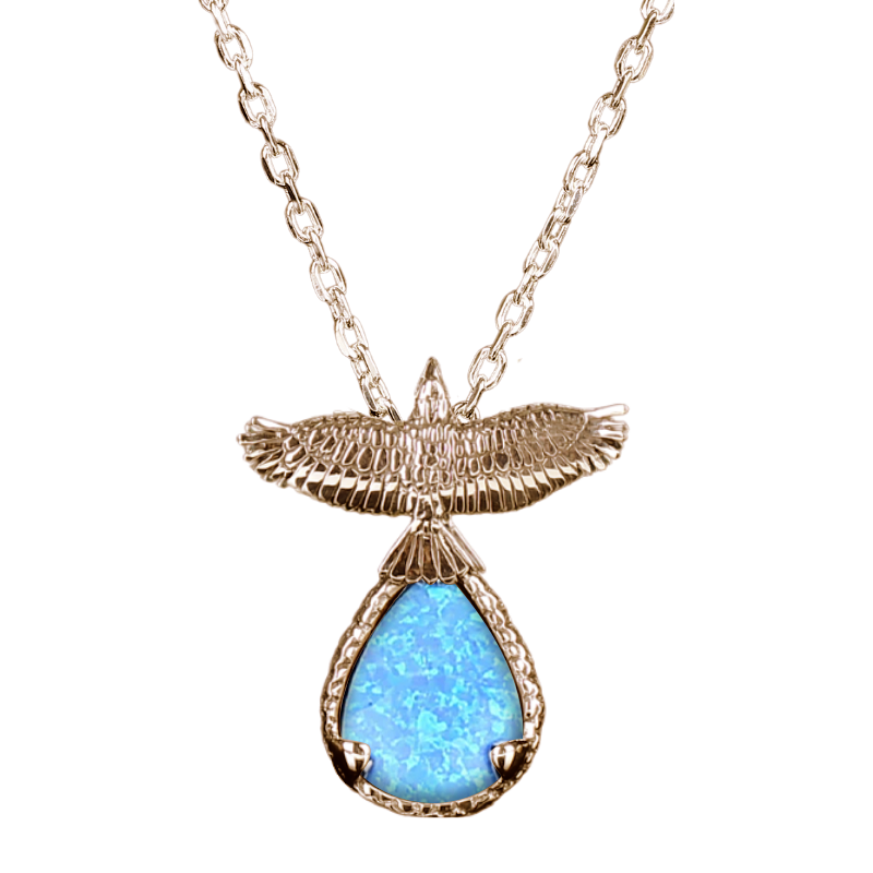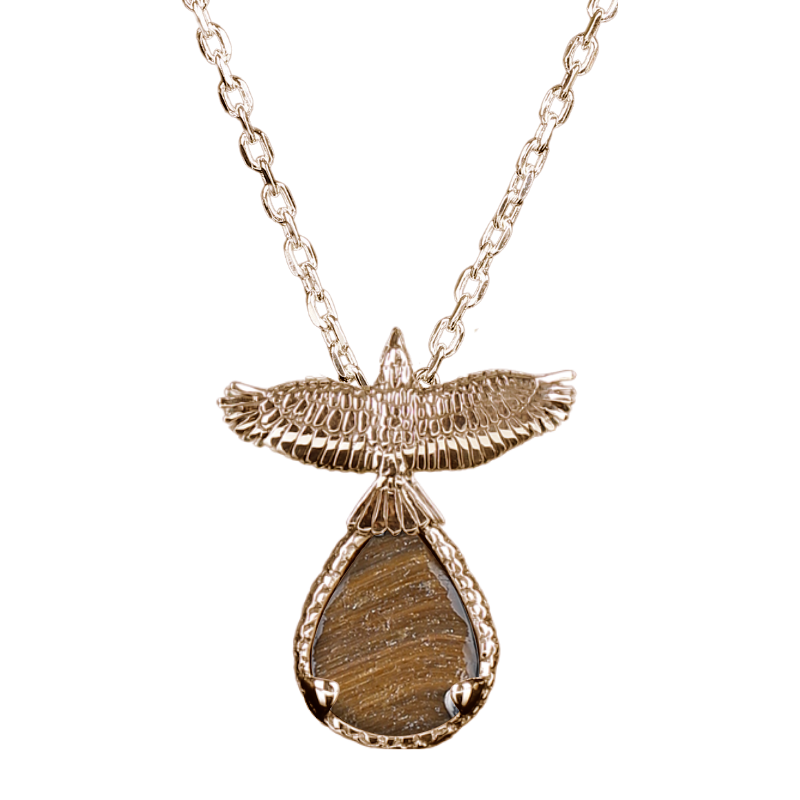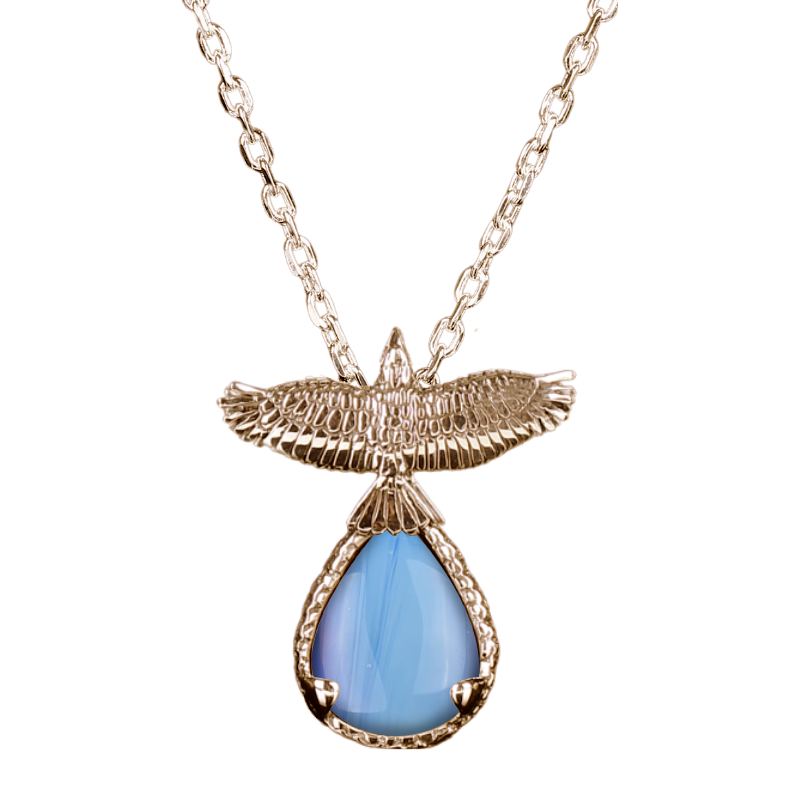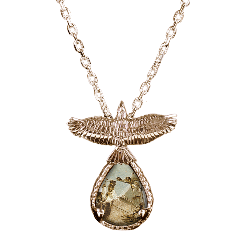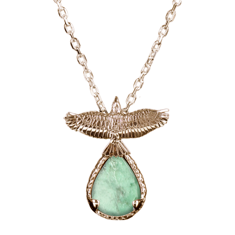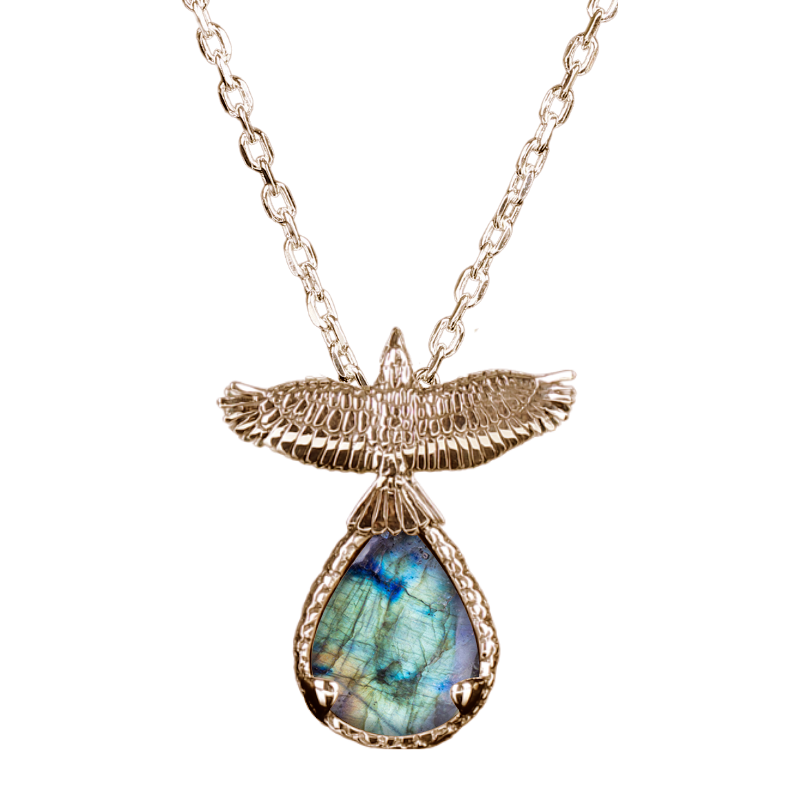 Pendant is sterling silver and approximately 2” in height (including body and stone). Sterling silver chain included. Gold finish is available at an additional cost. If you’d like to inquire about receiving your pendant in gold, please contact us directly.