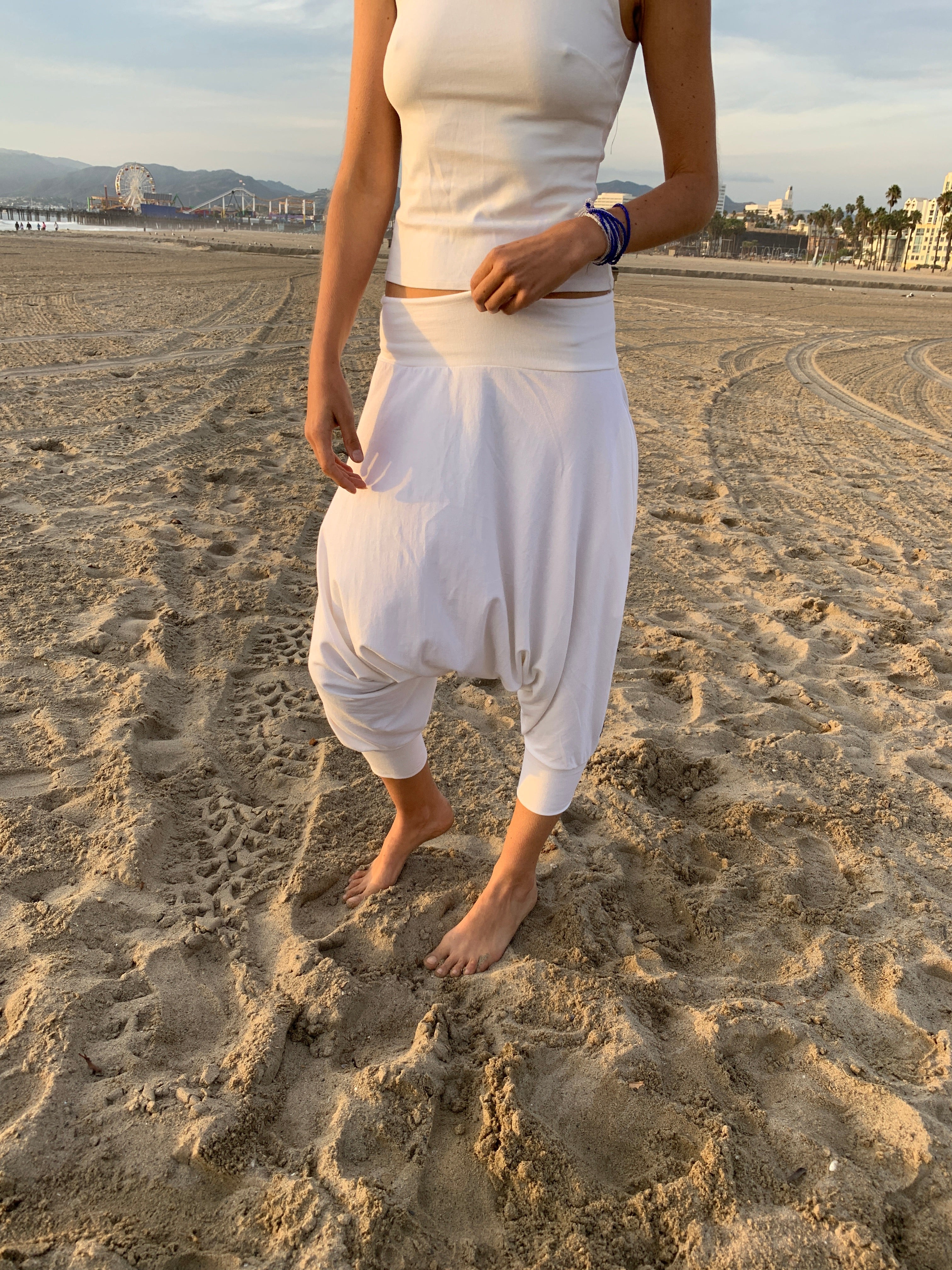 Our Ceremonial white capri length drop pants are perfect blend of comfort, style, and freedom. With a relaxed fit and flowing silhouette, they move effortlessly with you—whether you're traveling, exploring, or simply being