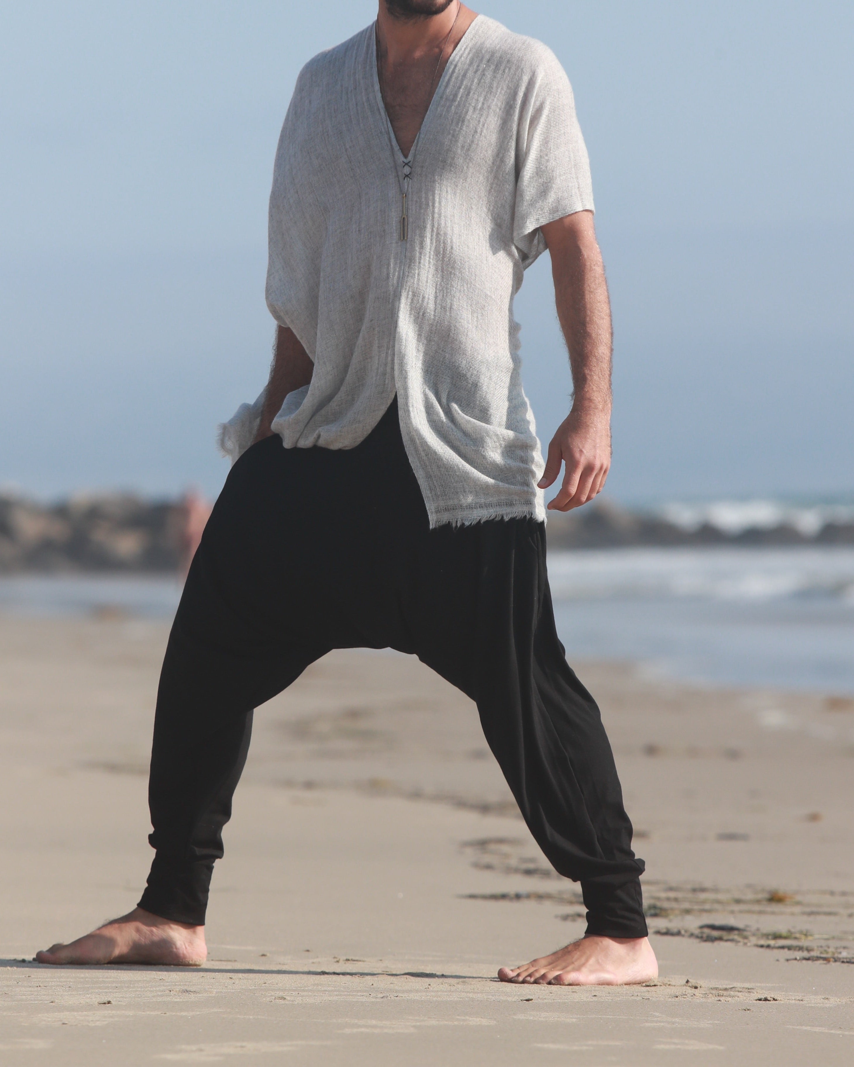 Choose between Samurai style (harem pants) and Wander pant style (middle, knee-level drop).