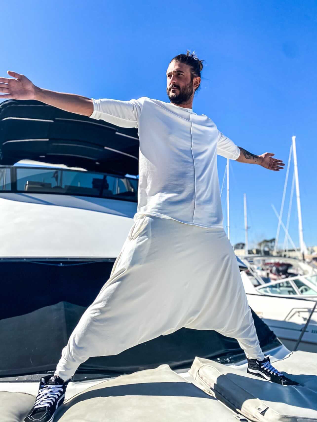 Style our white Deep Stretch Pants with the Middle Way Top. Middle Way Top is inspired by the words of the wise Lao Tzu and one of the chapters from Tao Te Ching, where he says that the Sage does not go into extremes and walks the Middle Way, holding on to the Center.