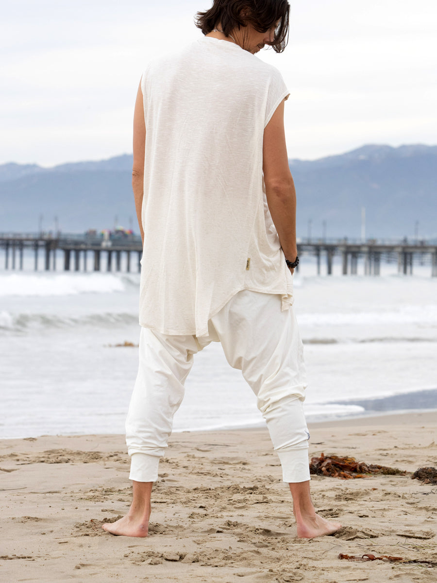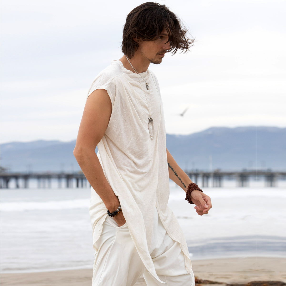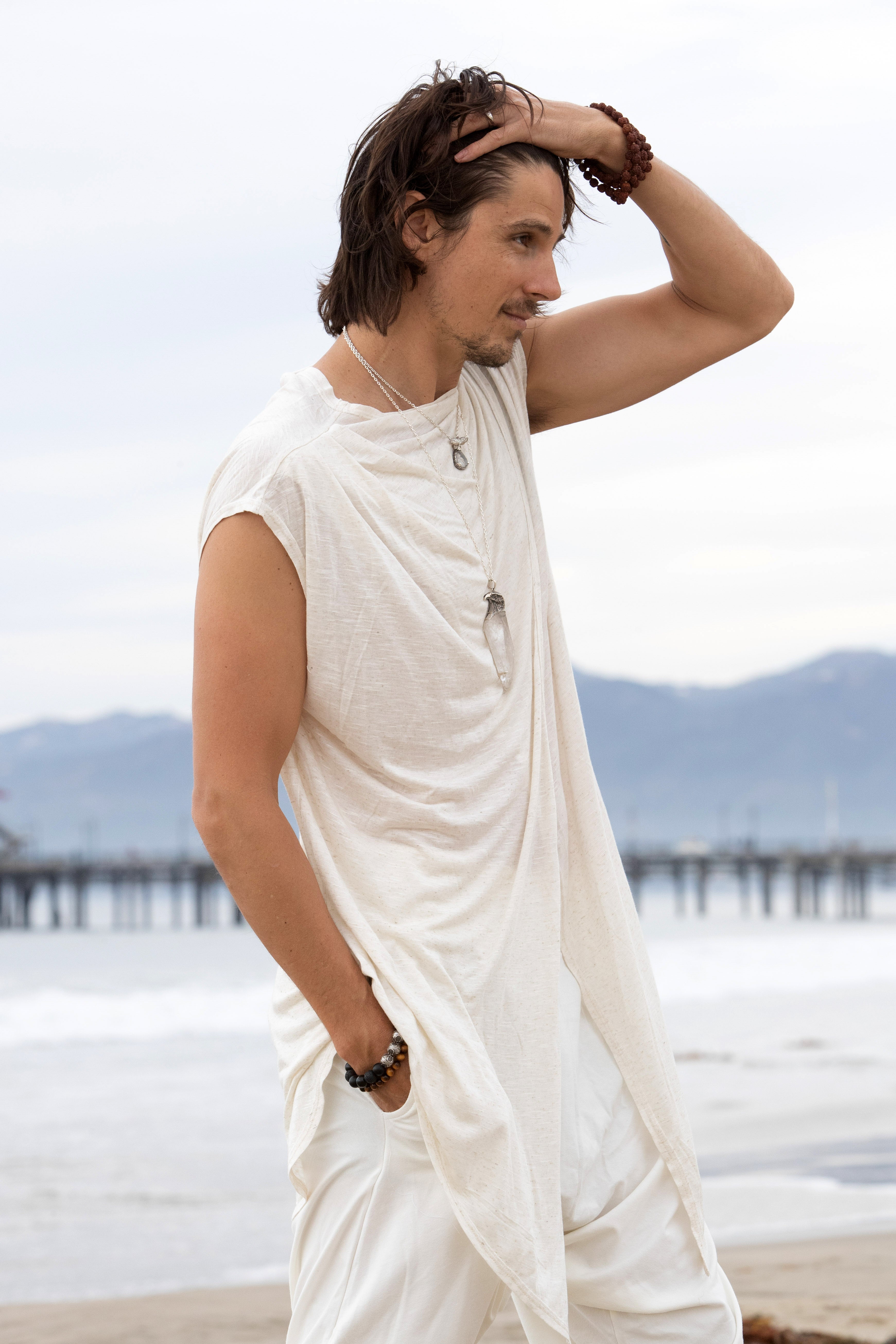 Lightweight, breathable, and super comfortable, it works equally well as a yoga shirt, ceremony attire, or styled for everyday wear.
